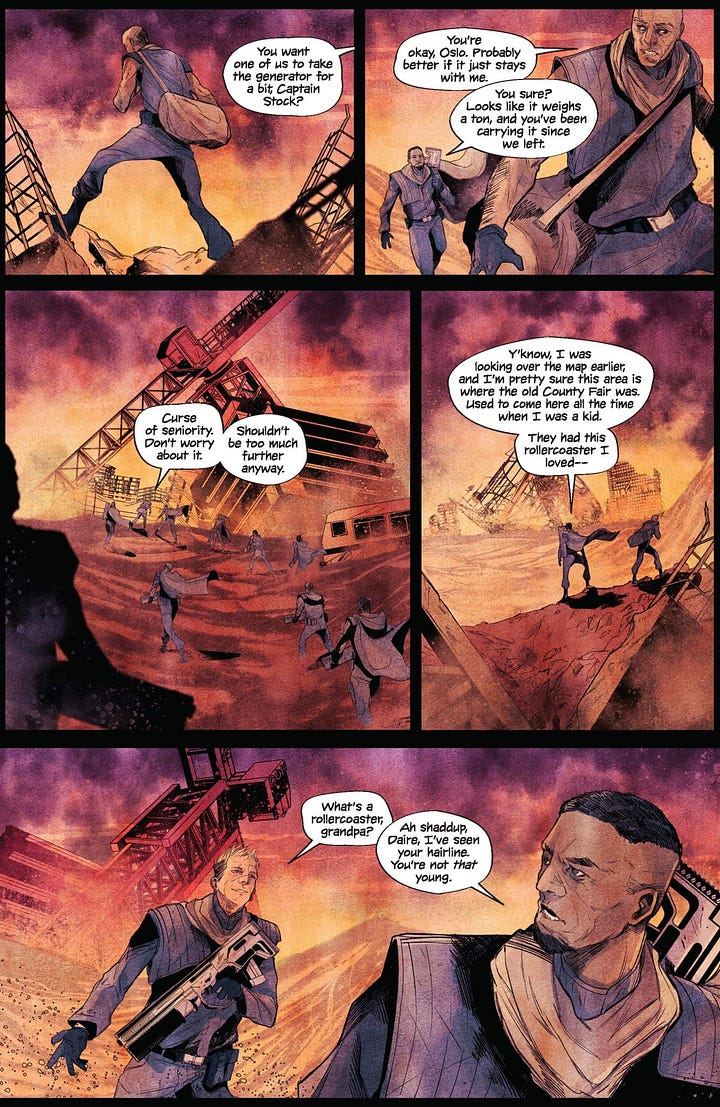 I’ve written a silent BARONESS story for Joëlle Jones! No shade on any artist I’ve worked with before, but I think this is the highest profile artist I’ve ever gotten to work with. This came totally out of the blue a few months back, Joëlle was on board for the issue but asked me if I’d be interested in writing it for her. Once I realised she was serious[?!], I happily accepted. I love silent stories and I’ve been fortunate enough to have written a few. This was a chance to do more OLD DOG-esque espionage while also getting to work with one of the best artists in the biz. Arguably because of that, this will be much better than OLD DOG