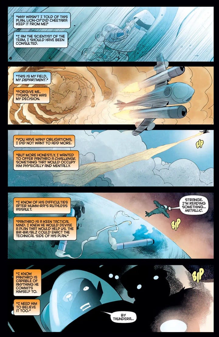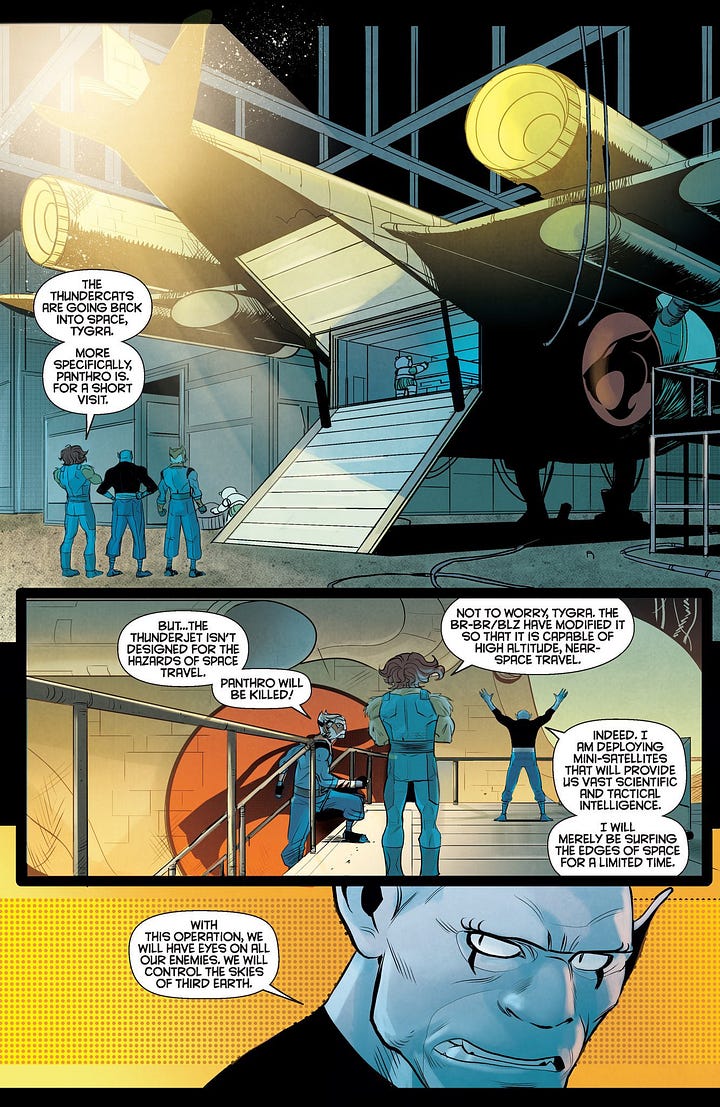 Let me add some background. People have been asking about this crossover since we announced the new THUNDERCATS series a couple of years ago. Truth be told, myself and Drew Moss had been leaving little hints here and there but there were even more questions once Ed Brisson launched his SILVERHAWKS series with George Kambadais. This has been in the planning stages for quite a while, all worked out between ThunderVerse editor Nate Cosby, Ed and myself. My main objective with the THUNDERCATS series when I took it on was to establish a new status quo for our comic series, to indroduce and re-introduce these characters for both new and previously dedicated audiences. Because of that, I wanted space for the book to just be about the ThunderCats and not get things too muddled. I very much got to do that in the first year of the book and was very satisfied with that. In the second year, we got to really expand the scope, leaving room to introduce other elements and having a wider world to do things like the LOST book, the one-shots, etc. Having done that for a year, now really feels like the right time to do this crossover, with the main book soon hitting that coveted 25th issue milestone.