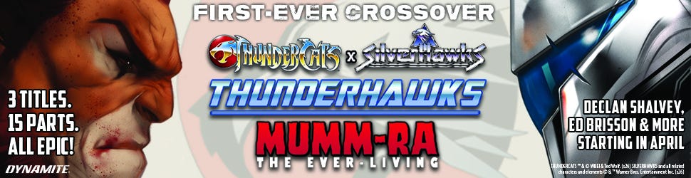 If ayowne wants to help spread the word, Dynamite made these fun THUNDERCATS X SILVERHAWKS promo banners. Use ‘em!