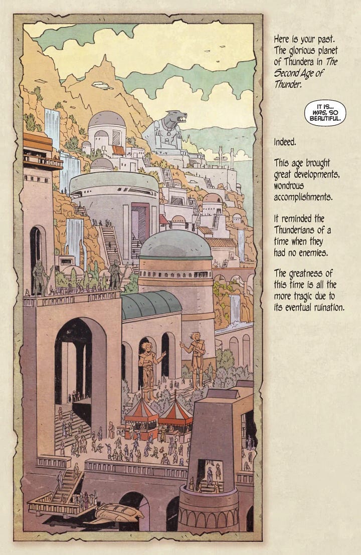 Full steam ahead on the o'l’ Thundera train. Tomorrow, THUNDERCATS #24 is out and it’s a special issue with wonderful art by David O’Sullivan. Here’s the gorgeous preview pages…